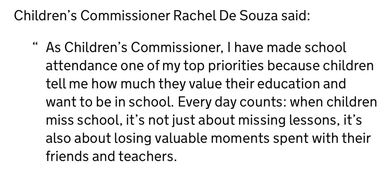 We should be talking about adjustments not fines. We should be talking about child-led and trauma-centred approaches, not control. We should be talking about WHY so many neurodivergent kids struggle to attend school and why our system is failing them.