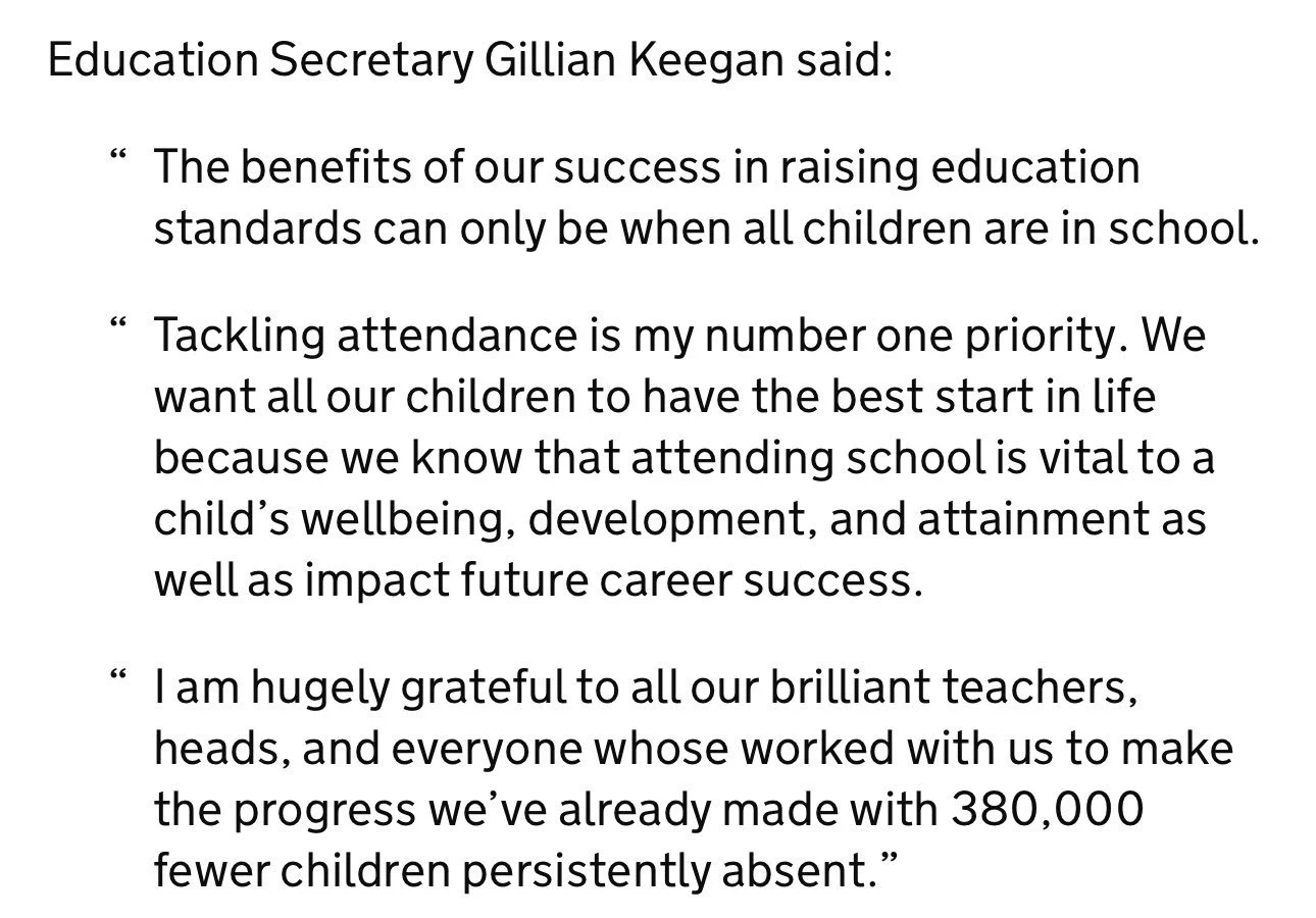 The British Psychological Society (2017) state that fines and prosecution is usually unlikely to have any effect on persistent absentees. Yet our government is so focused on this approach.